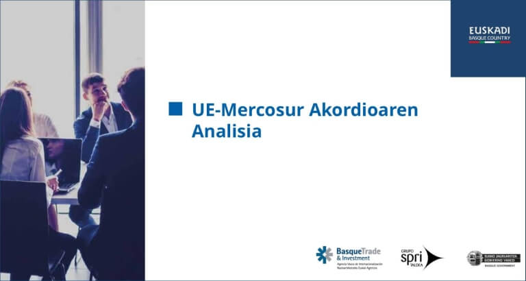 Basque Trade & Investment-ek EB – Mercosur Akordioaren Analisia argitaratu du, EBk negoziatutako merkataritza-itun handienari sakontasunez heltzen dion txosten estrategikoa. Dokumentuak ikuspegi argia ematen du akordioaren egungo egoerari buruz, muga-zergen murrizketaren egutegiari buruz, sektoreka aurreikusitako eraginari buruz eta Europako enpresentzat eta, bereziki, euskal enpresentzat izango dituen inplikazio praktikoei buruz. Deskargatu hemen txostena.